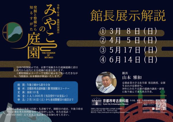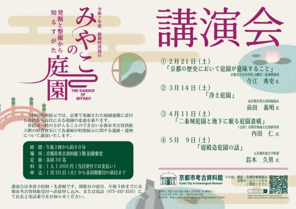 この度、京都市考古資料館では、令和8年2月14日(土)より、特別展示「みやこの庭園-発掘と整備から知るすがた-」を下記のとおり開催します。